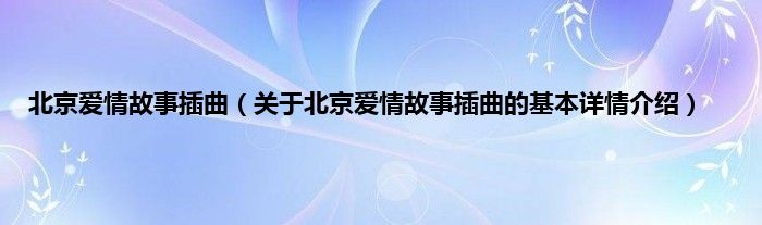 本文关于北京爱情故事插曲的基本详情介绍就讲解完毕,希望对大家有所帮助。