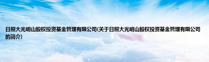本文关于日照大光明山股权投资基金管理有限公司的简介就讲解完毕,希望对大家有所帮助。
