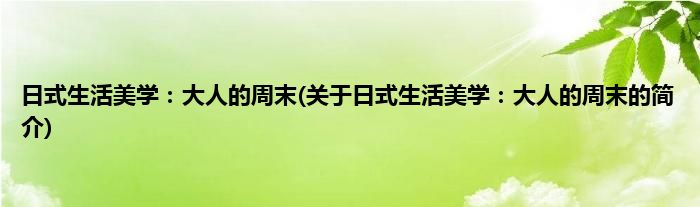 本文关于日式生活美学:大人的周末的简介就讲解完毕,希望对大家有所帮助。