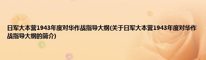 日军大本营1943年度对华作战指导大纲(关于日军大本营1943年度对华作战指导大纲的简介)