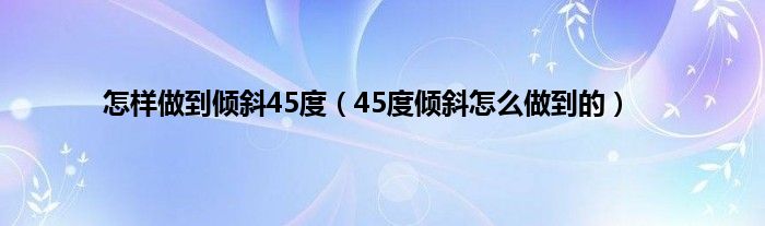 以上就是【怎样做到倾斜45度,45度倾斜怎么做到的】相关内容。