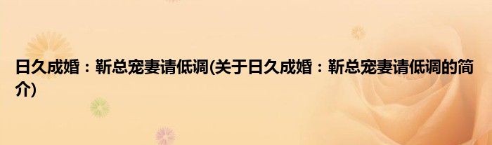日久成婚:靳总宠妻请低调(关于日久成婚:靳总宠妻请低调的简介)