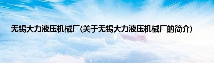 本文关于无锡大力液压机械厂的简介就讲解完毕,希望对大家有所帮助。