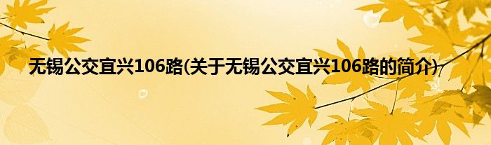 无锡公交宜兴106路(关于无锡公交宜兴106路的简介)