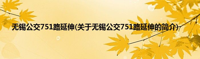 大家好,无锡公交751路延伸,关于无锡公交751路延伸的简介很多人还不知道,现在让我们一起来看看吧!