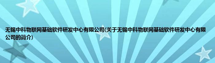 无锡中科物联网基础软件研发中心有限公司(关于无锡中科物联网基础软件研发中心有限公...