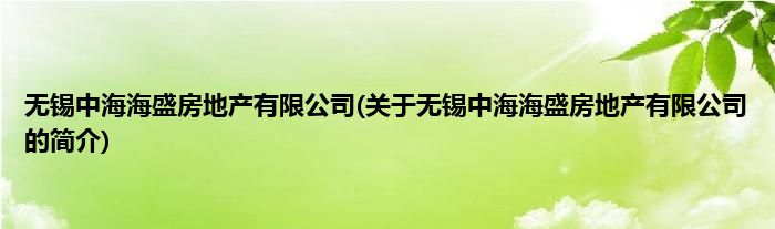 本文关于无锡中海海盛房地产有限公司的简介就讲解完毕,希望对大家有所帮助。