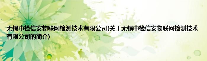 无锡中检信安物联网检测技术有限公司(关于无锡中检信安物联网检测技术有限公司的简介)
