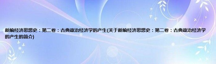 大家好,新编经济思想史:第二卷:古典政治经济学的产生,关于新编经济思想史:第二卷:古典政治经济学的产生的简介很多人还不知道,现在让我们一起来看看吧!