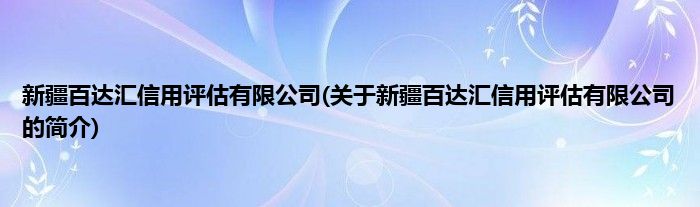 本文关于新疆百达汇信用评估有限公司的简介就讲解完毕,希望对大家有所帮助。