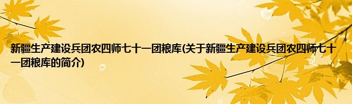 本文关于新疆生产建设兵团农四师七十一团粮库的简介就讲解完毕,希望对大家有所帮助。