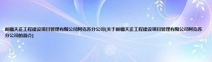 本文关于新疆天正工程建设项目管理有限公司阿克苏分公司的简介就讲解完毕,希望对大家有所帮助。