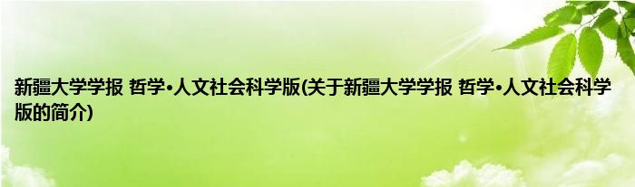 本文关于新疆大学学报 哲学·人文社会科学版的简介就讲解完毕,希望对大家有所帮助。