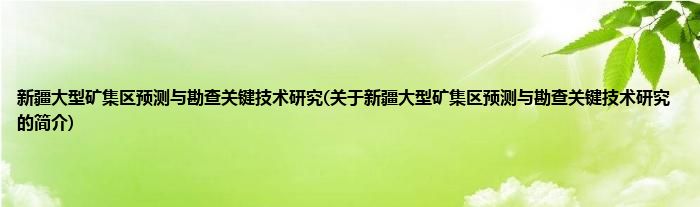本文关于新疆大型矿集区预测与勘查关键技术研究的简介就讲解完毕,希望对大家有所帮助。