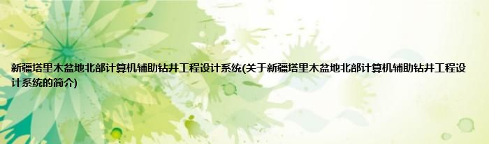 新疆塔里木盆地北部计算机辅助钻井工程设计系统(关于新疆塔里木盆地北部计算机辅助钻井工程设计系统的简介)