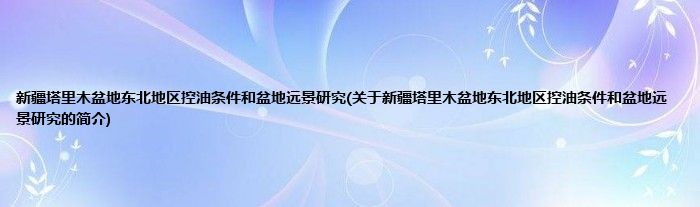 新疆塔里木盆地东北地区控油条件和盆地远景研究(关于新疆塔里木盆地东北地区控油条件和盆地远景研究的简介)