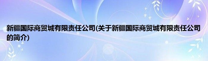 本文关于新疆国际商贸城有限责任公司的简介就讲解完毕,希望对大家有所帮助。