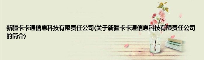 本文关于新疆卡卡通信息科技有限责任公司的简介就讲解完毕,希望对大家有所帮助。