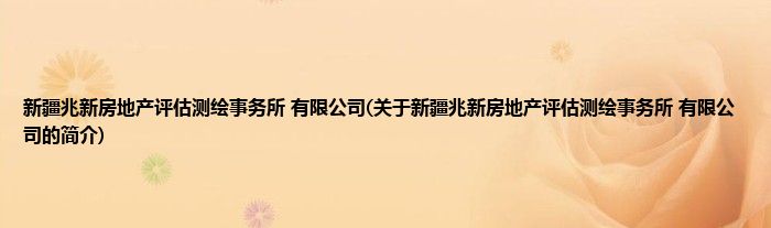 本文关于新疆兆新房地产评估测绘事务所 有限公司的简介就讲解完毕,希望对大家有所帮助。