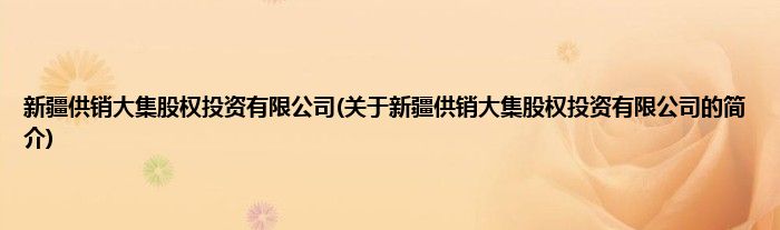 本文关于新疆供销大集股权投资有限公司的简介就讲解完毕,希望对大家有所帮助。