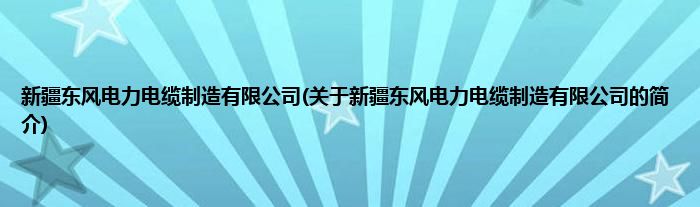 本文关于新疆东风电力电缆制造有限公司的简介就讲解完毕,希望对大家有所帮助。