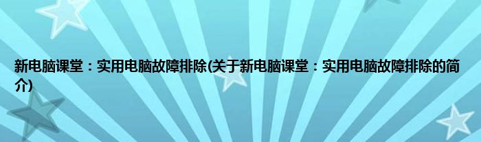大家好,新电脑课堂:实用电脑故障排除,关于新电脑课堂:实用电脑故障排除的简介很多人还不知道,现在让我们一起来看看吧!