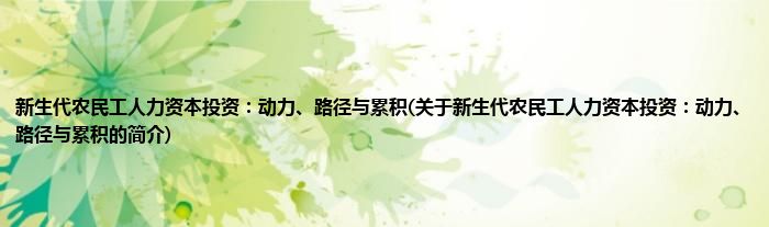 本文关于新生代农民工人力资本投资:动力、路径与累积的简介就讲解完毕,希望对大家有所帮助。