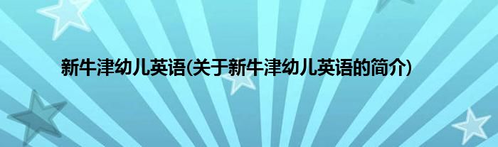 本文关于新牛津幼儿英语的简介就讲解完毕,希望对大家有所帮助。