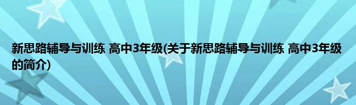 本文关于新思路辅导与训练 高中3年级的简介就讲解完毕,希望对大家有所帮助。