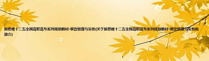 本文关于新思维十二五全国高职高专系列规划教材·餐饮管理与实务的简介就讲解完毕,希望对大家有所帮助。