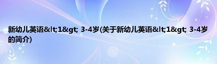 本文关于新幼儿英语<1> 3-4岁的简介就讲解完毕,希望对大家有所帮助。
