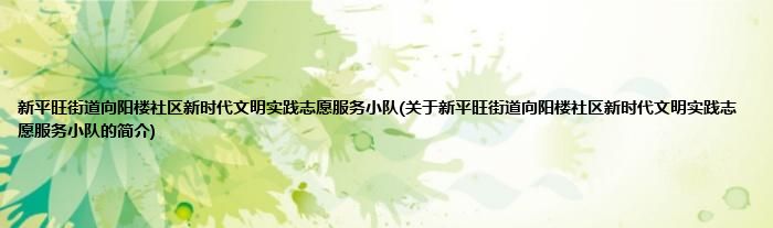 本文关于新平旺街道向阳楼社区新时代文明实践志愿服务小队的简介就讲解完毕,希望对大家有所帮助。