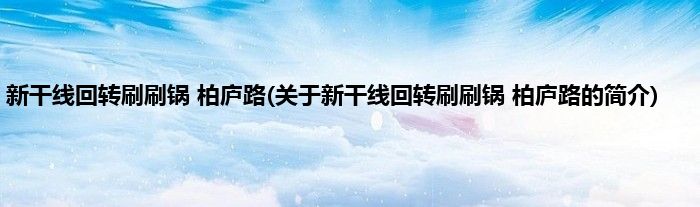 本文关于新干线回转刷刷锅 柏庐路的简介就讲解完毕,希望对大家有所帮助。