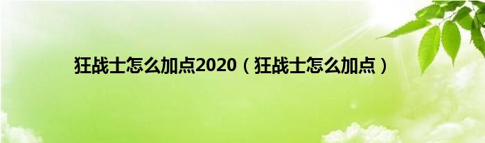 以上就是【狂战士怎么加点2020,狂战士怎么加点】相关内容。