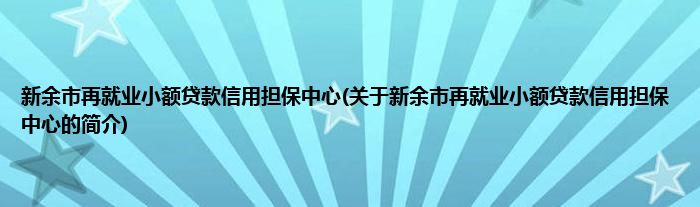 本文关于新余市再就业小额贷款信用担保中心的简介就讲解完毕,希望对大家有所帮助。