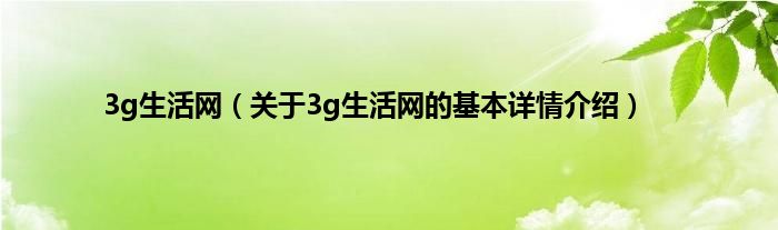 本文关于3g生活网的基本详情介绍就讲解完毕,希望对大家有所帮助。