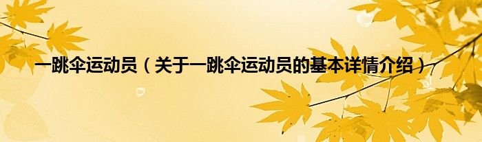 大家好我是小蝌蚪,一跳伞运动员,关于一跳伞运动员的基本详情介绍很多人还不知道,那么现在让我们一起来看看吧!