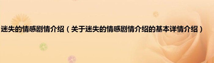 本文关于迷失的情感剧情介绍的基本详情介绍就讲解完毕,希望对大家有所帮助。