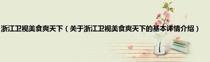 本文关于浙江卫视美食爽天下的基本详情介绍就讲解完毕,希望对大家有所帮助。