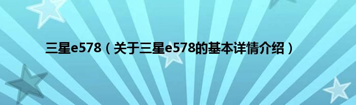 本文关于三星e578的基本详情介绍就讲解完毕,希望对大家有所帮助。