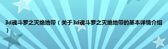 本文关于3d魂斗罗之灭绝地带的基本详情介绍就讲解完毕,希望对大家有所帮助。
