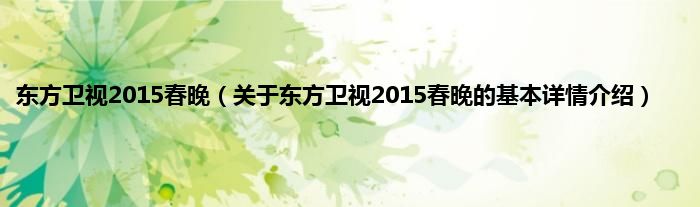 本文关于东方卫视2015春晚的基本详情介绍就讲解完毕,希望对大家有所帮助。