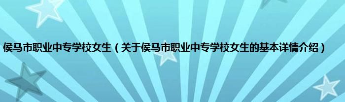 本文关于侯马市职业中专学校女生的基本详情介绍就讲解完毕,希望对大家有所帮助。