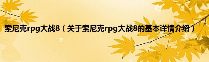 索尼克rpg大战8(关于索尼克rpg大战8的基本详情介绍)