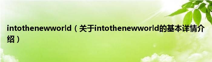 intothenewworld(关于intothenewworld的基本详情介绍...