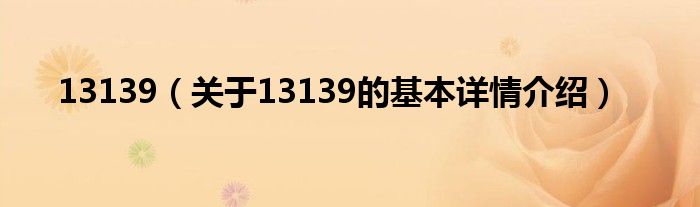本文关于13139的基本详情介绍就讲解完毕,希望对大家有所帮助。