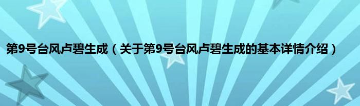 第9号台风卢碧生成(关于第9号台风卢碧生成的基本详情介绍)