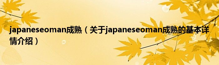 本文关于japaneseoman成熟的基本详情介绍就讲解完毕,希望对大家有所帮助。
