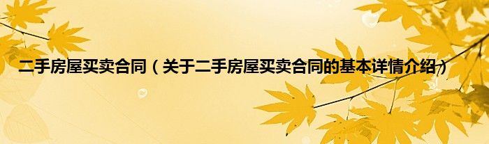 本文关于二手房屋买卖合同的基本详情介绍就讲解完毕,希望对大家有所帮助。