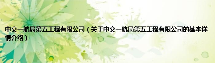 本文关于中交一航局第五工程有限公司的基本详情介绍就讲解完毕,希望对大家有所帮助。